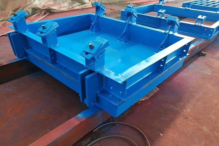 防水防火密閉門(mén)是煤礦井下主要的安全防護(hù)門(mén)之一,用于井下主變電所和主排水泵房通往井底車(chē)場(chǎng)的通道內(nèi),容易關(guān)閉,以防止水的突然浸入,承受壓力可達(dá)98KPa。防水防火密閉門(mén)門(mén)扇為平鋼板、井字筋板、圈梁等組焊而成,門(mén)框?yàn)椴垆?、工字鋼組合框架結(jié)構(gòu),拉緊裝置為楔形滑塊楔緊,安裝時(shí)按我廠原有設(shè)計(jì)將門(mén)組裝好,按照事先預(yù)留好的位置將門(mén)與硐室門(mén)口連成一體。